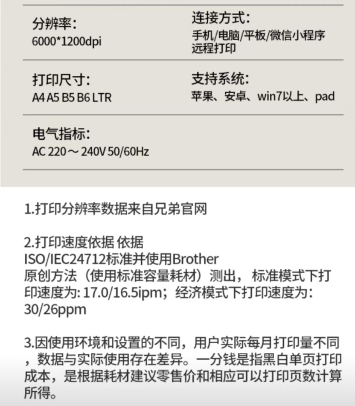 黑白打印速度(頁/分鐘 ppm)  :   17